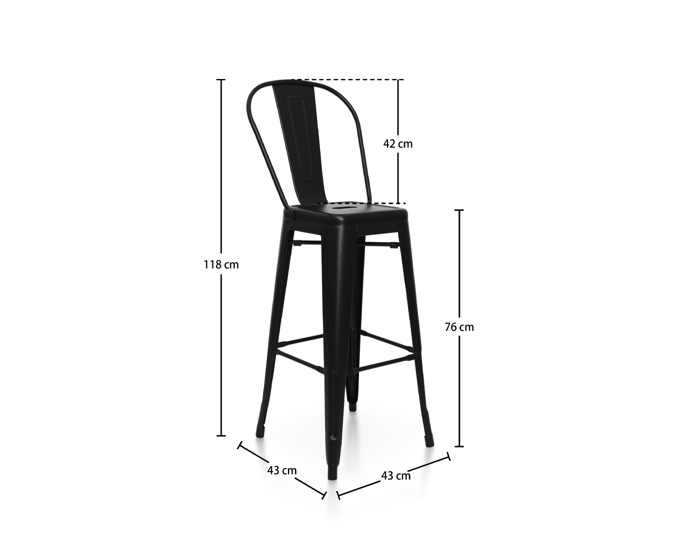 Rumah / Produk / Kerusi reka bentuk / Barstool logam hitam dengan backrest