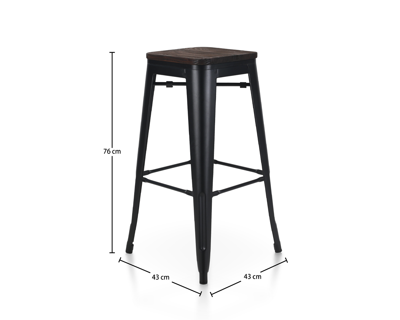 • Menampilkan kemasan hitam yang anggun yang memancarkan keanggunan dan fleksibiliti. Dibuat dari besi berkualiti tinggi, ia mempunyai ketahanan dan kekuatan yang luar biasa manakala kaki dan silang yang kukuh menawarkan kestabilan tambahan, meningkatkan fungsi keseluruhan najis.