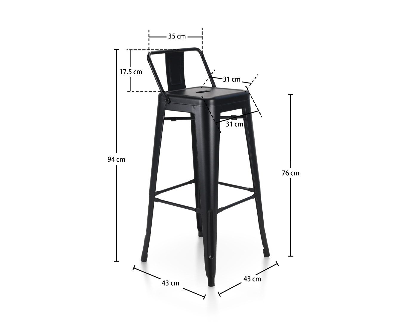 • Ketinggian tempat duduk direka dengan baik untuk sesuai untuk meja ketinggian bar, yang membolehkan pengguna duduk di sudut yang selesa dengan kaki mereka berehat di kaki kaki, yang merupakan bahagian penting dalam reka bentuk kerusi.