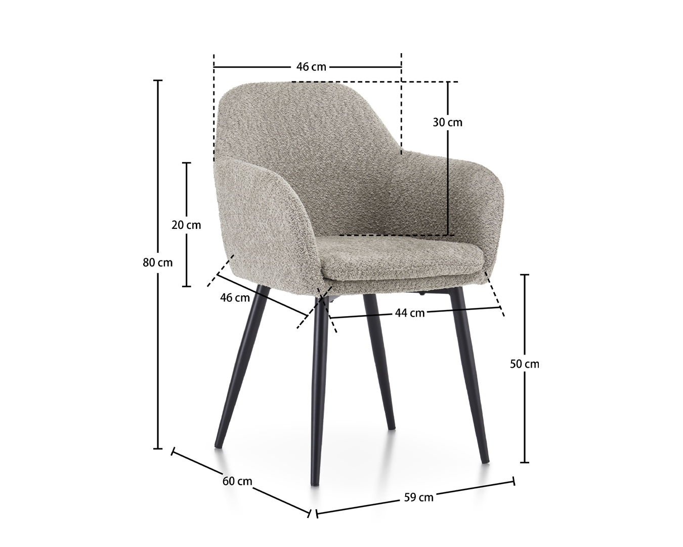 • Direka dengan estetika moden, kerusi ini mempunyai kain yang mewah dan bertekstur yang menjemput anda untuk duduk dan berehat.