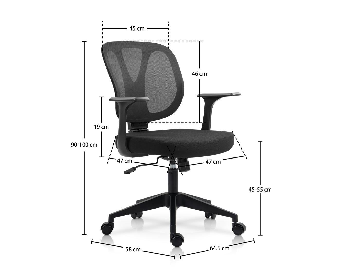 -Saiz: W64.5*D58*H90-100 cm / sh: 45-55 cm