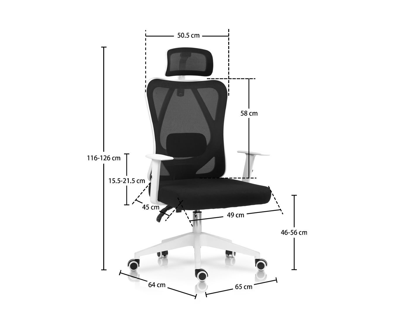 • Mekanisme ketinggian laras membolehkan anda menyesuaikan kerusi agar sesuai dengan keperluan khusus anda, memastikan kaki anda rata di atas tanah dan lutut anda berada pada sudut 90 darjah. Landrests boleh diselaraskan untuk memberikan sokongan yang sempurna untuk lengan anda, mengurangkan ketegangan pada bahu dan leher anda. Sokongan lumbar yang dibina ke dalam backrest menggalakkan postur yang betul, meningkatkan keselesaan dan produktiviti keseluruhan.