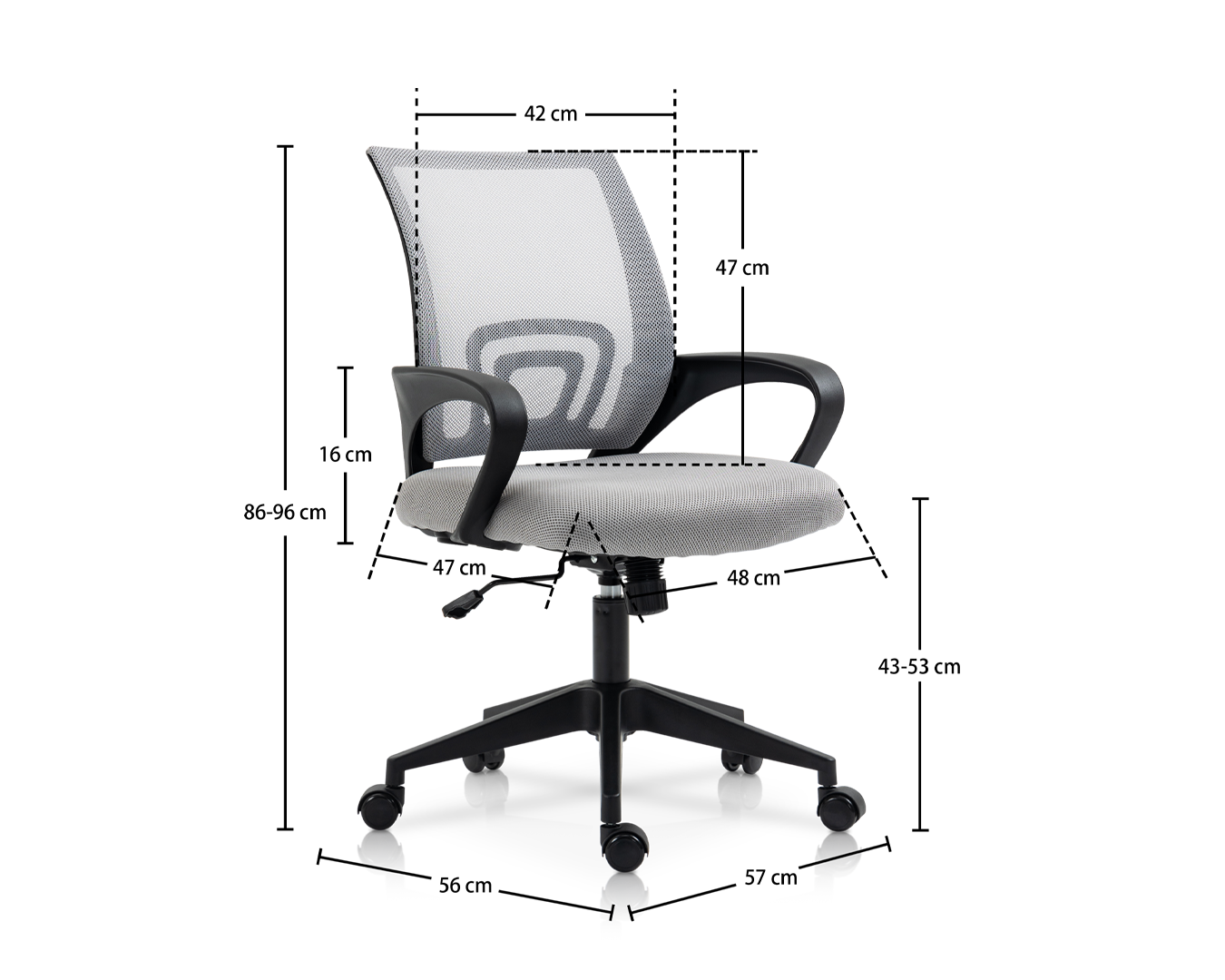 • Menyesuaikan diri dengan ketinggian pilihan anda, kerusi ini memberi anda fleksibiliti untuk membuat ruang kerja ideal anda.