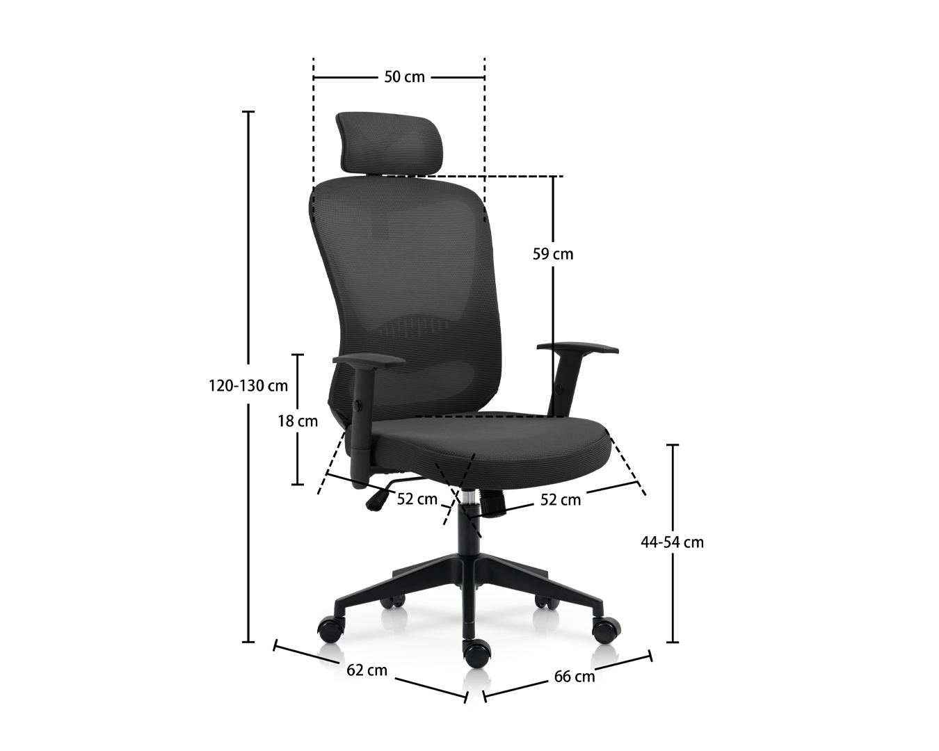 -Saiz: W66*D62*H120-130 cm / sh: 44-54 cm