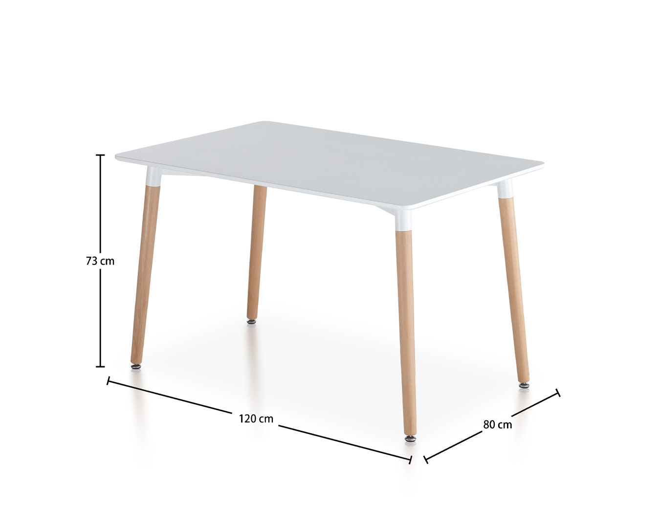 • Kaki kayu beech bukan sahaja memberikan sokongan yang kukuh tetapi juga memperkenalkan elemen semulajadi dan bersahaja yang berbeza dengan bahagian atas putih, mewujudkan rupa yang segar dan menarik. Pada panjang 120 cm, ia adalah saiz yang ideal untuk kedua-dua ruang makan kecil dan sederhana.