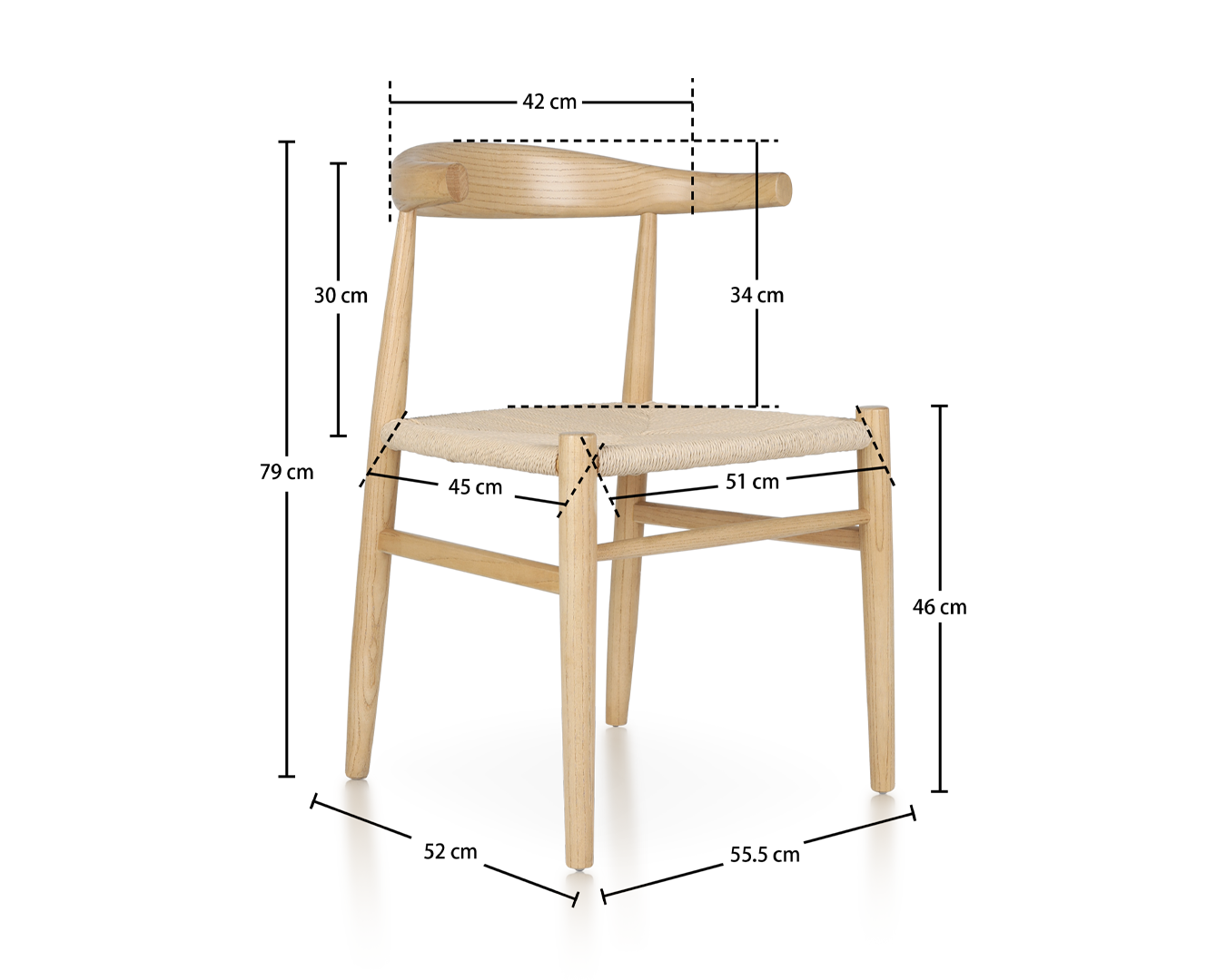 - Saiz: W55.5*D52*H79CM / SH: 46 cm
